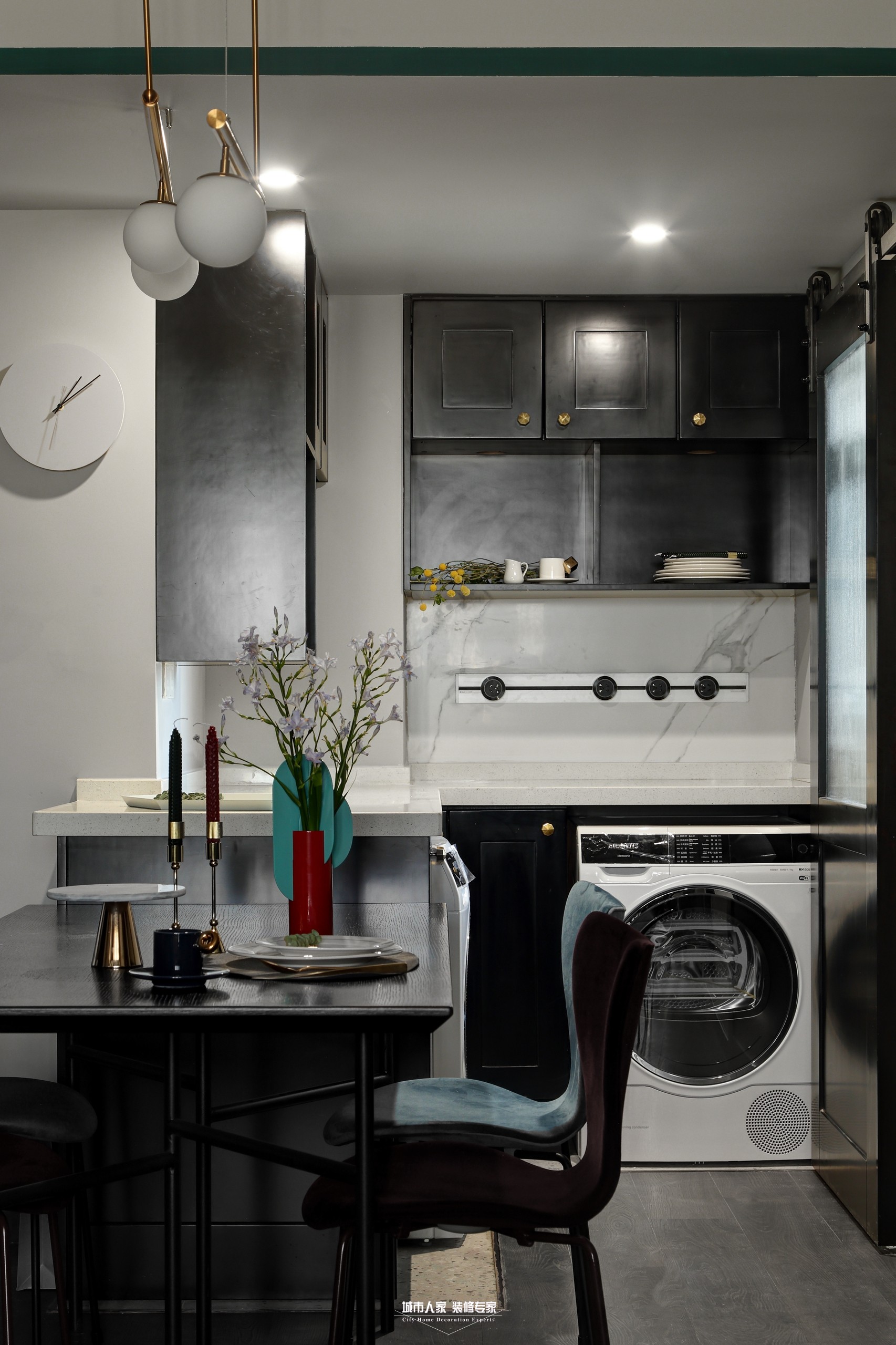 這是一套小戶型,雖然面積不大,但是我們還是為這個(gè)小家考慮足夠的收納空間。我們的委托人樹(shù)樹(shù)和cici是一對(duì)年輕人,平時(shí)喜歡小酌幾杯,所以我們?cè)O(shè)計(jì)了開(kāi)放式的裝飾酒柜,就像cici說(shuō)的:就算不喝,看著他們也開(kāi)心!